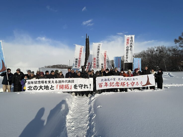道は「丁寧な説明」と称して同じ説明を繰り返す一方で、記念塔跡地利用の構想を発表するなど、着々と既成事実を積み上げていった。道民グループは解体差止めを求めて道を提訴。裁判費用調達のためクラウドファンディングを行うと1400人から1000万円の資金が寄せられた。