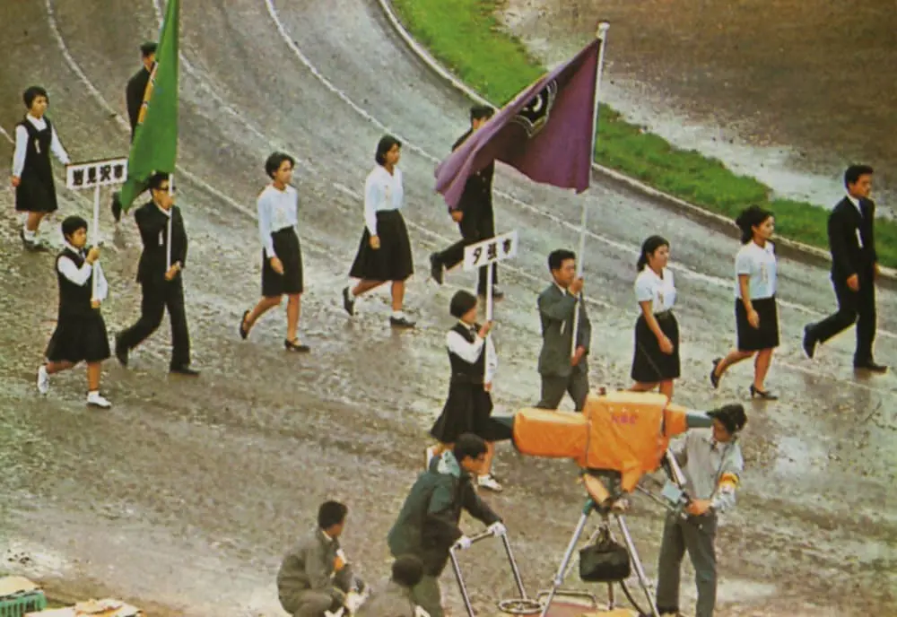 前日の豪雨で荒れた会場内外は手早く整備され.全道の市町村旗が会場を囲んではためき、受け付け、案内にあたる道職員たちが持ち場につき、参列者を迎え入れる準備は万端ととのって待機する。テレビは、NHK、HBC(北海道放送)、STV(札幌テレビ放送)の3局がこの祝典をもって地元から初めてカラー放送を開始することになり、その初放送が全国に中継されるのである。