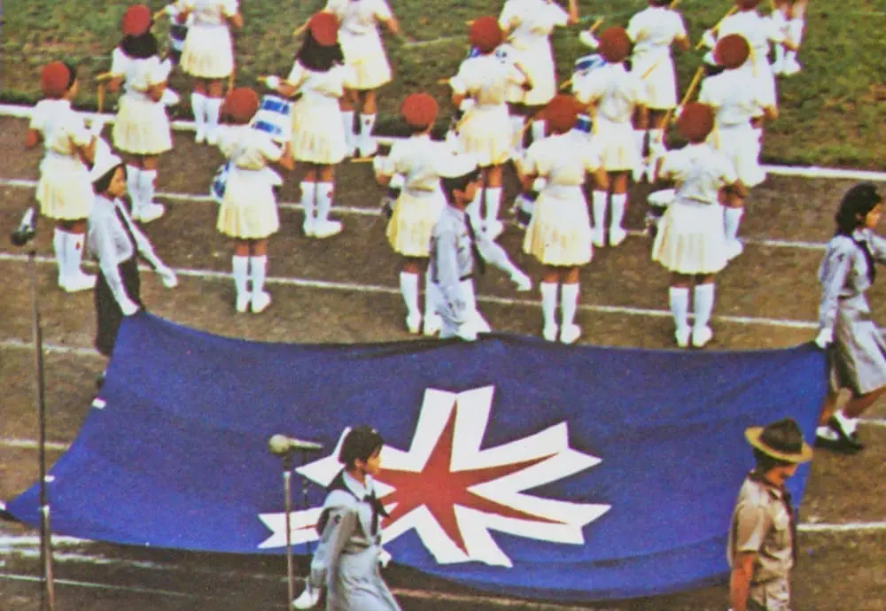 北海道のエンブレム7稜星は、「北海道百年」事業検討の中で制定が決められ1967年5月27日発表されました。この制定されたばかりのエンブレムをお披露目することが祝典前半のメインイベントでした。