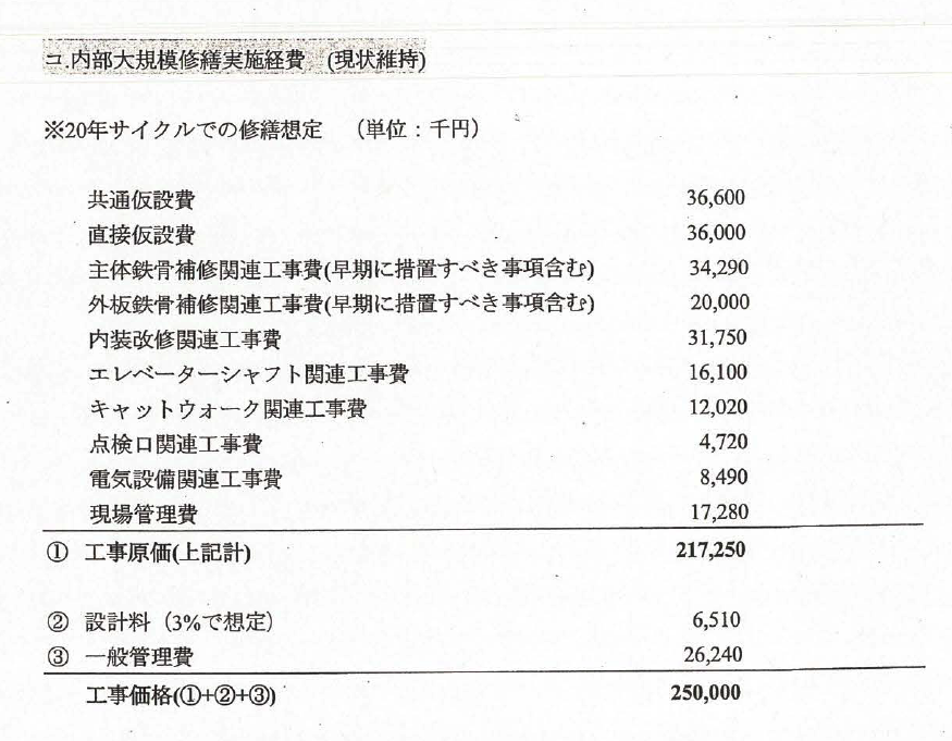 今後の50年間で大規模修繕を内部と外部に分けて6回も行うとしたことが高コストの原因となっています。それらは本当に必要な工事なんですか? コストアップのために盛ったものではないんですか?