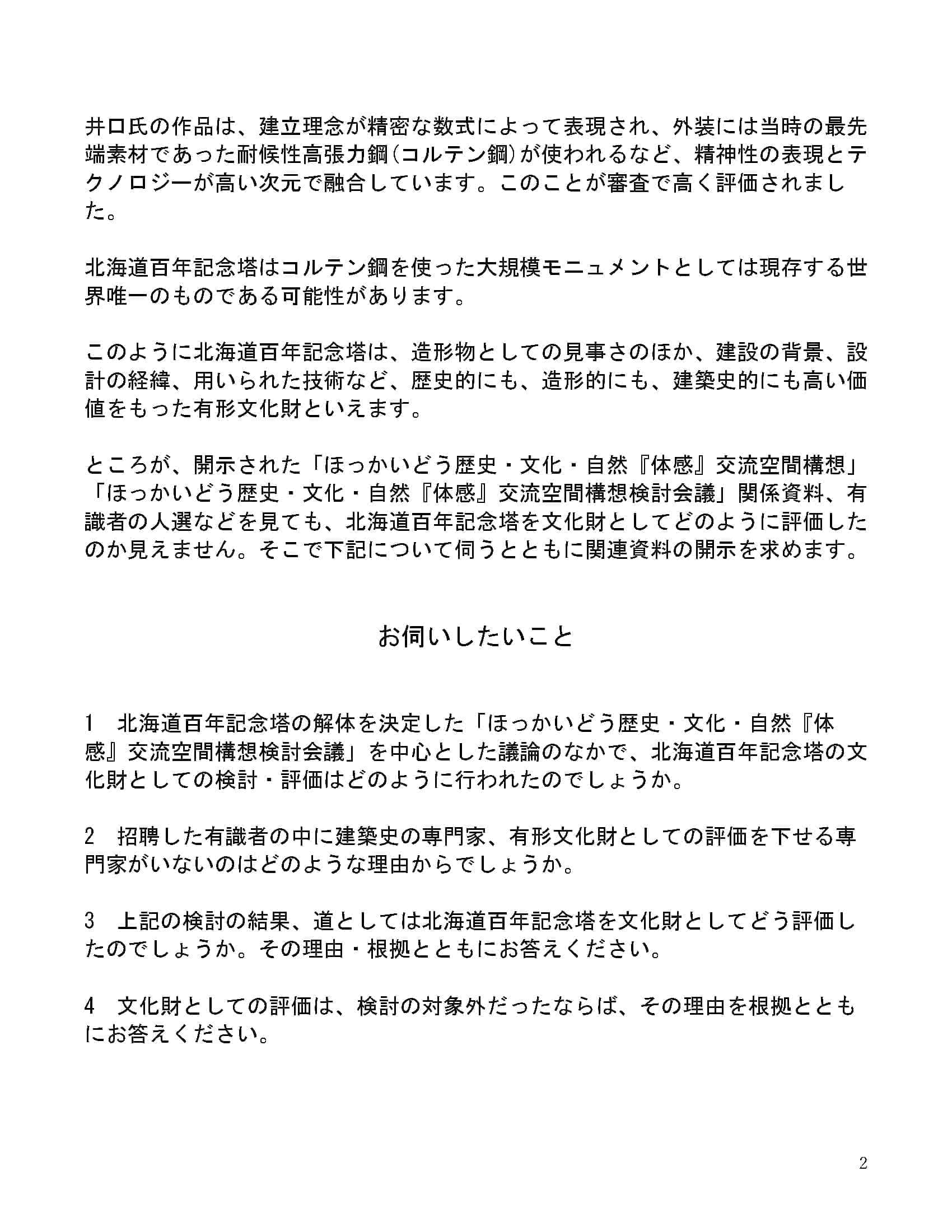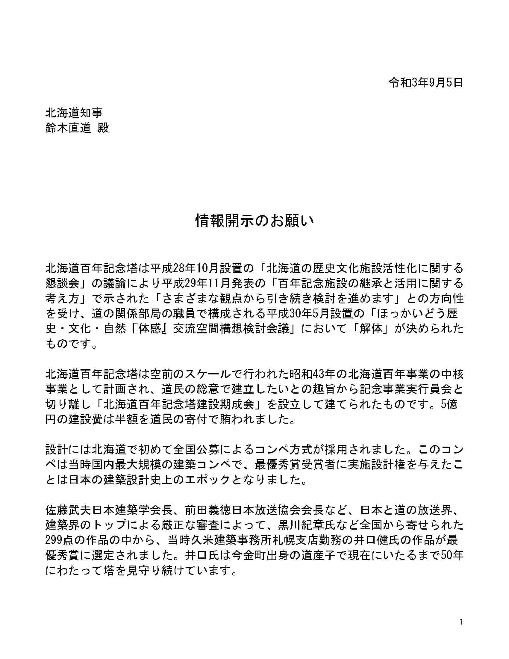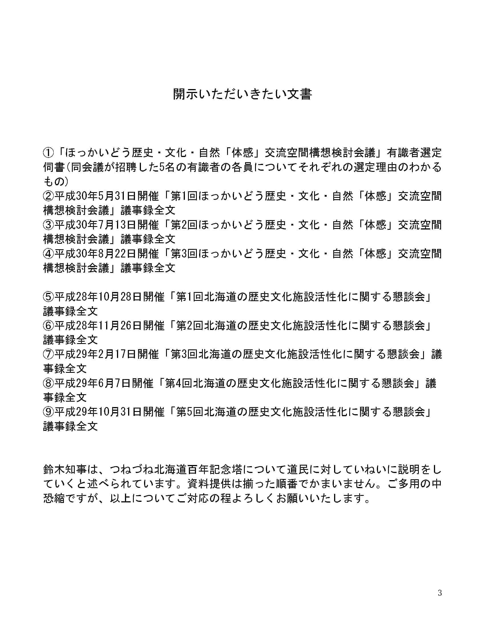 そこで、下記のような書類を北海道の情報公開システムに則って知事に提出しました。回答があり次第、お知らせします。